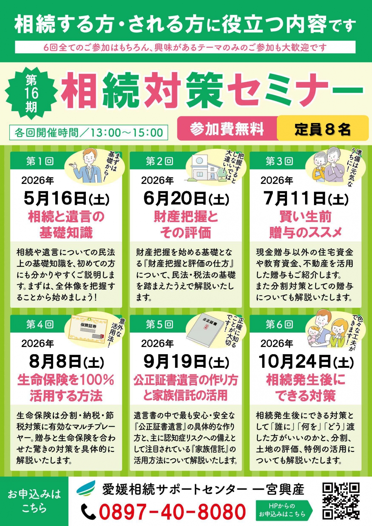 【第16期】相続対策セミナー in 新居浜 参加受付開始しました